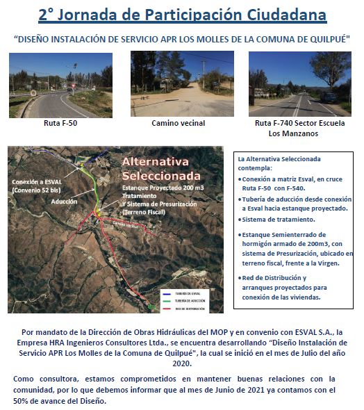 Segunda Jornada de Participación Ciudadana del «Diseño Instalación de Servicio APR Los Molles de la Comuna de Quilpué»