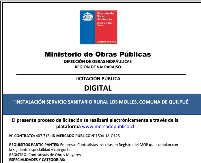 Entrega de bases por DOH para licitación “INSTALACIÓN SERVICIO SANITARIO RURAL LOS MOLLES, COMUNA DE QUILPUÉ” Claudia Contreras In...